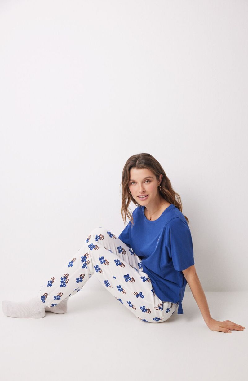 Pijamas y HomewearPantalonesPantalón Largo 100% Algodón Skinny Flores Azul Women'Secret