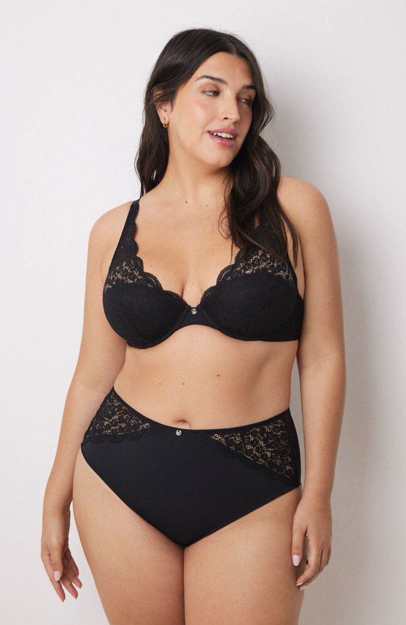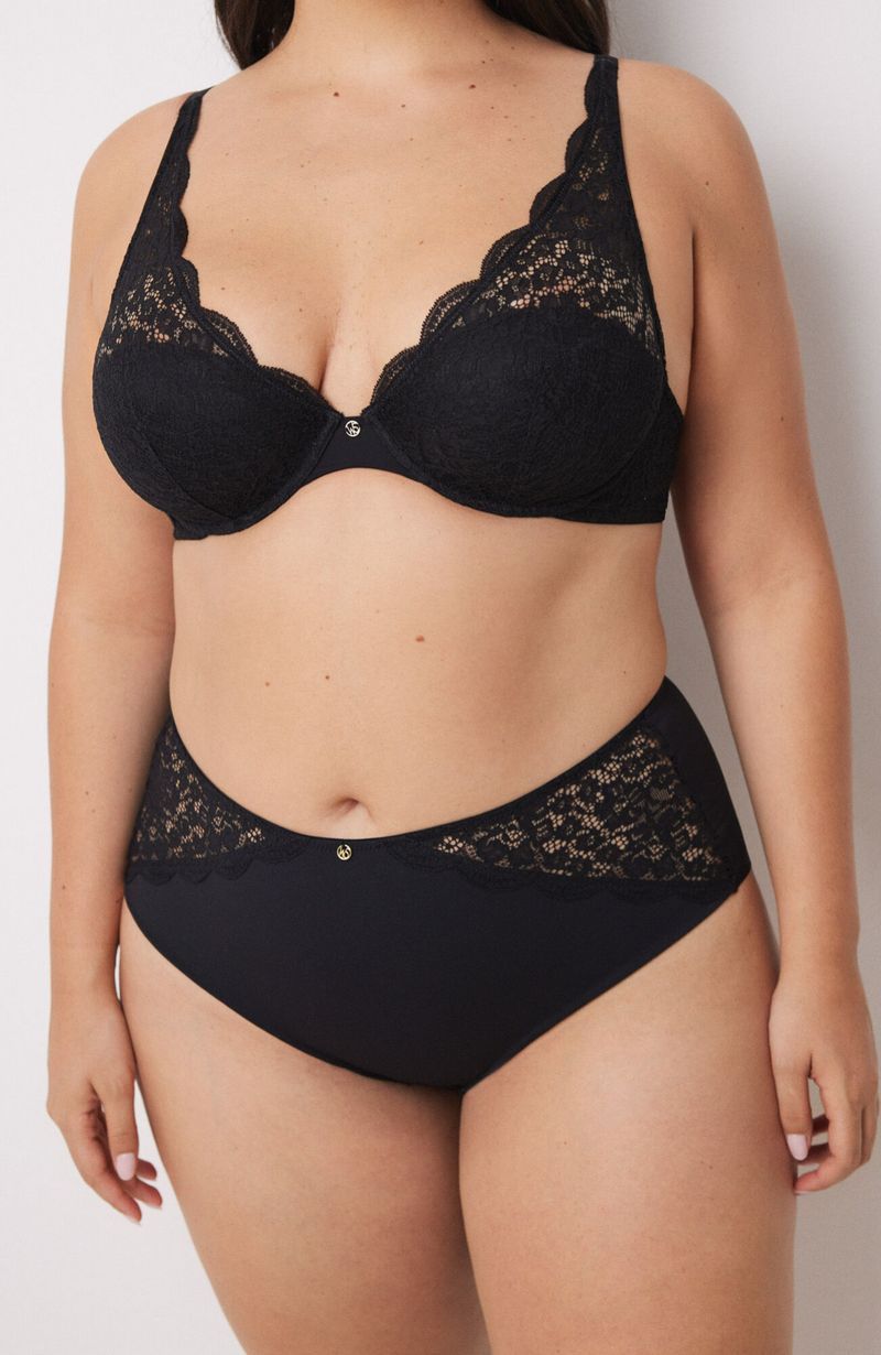 CalzonesAltosCalzón Alto Microfibra Y Encaje Negro Women'Secret