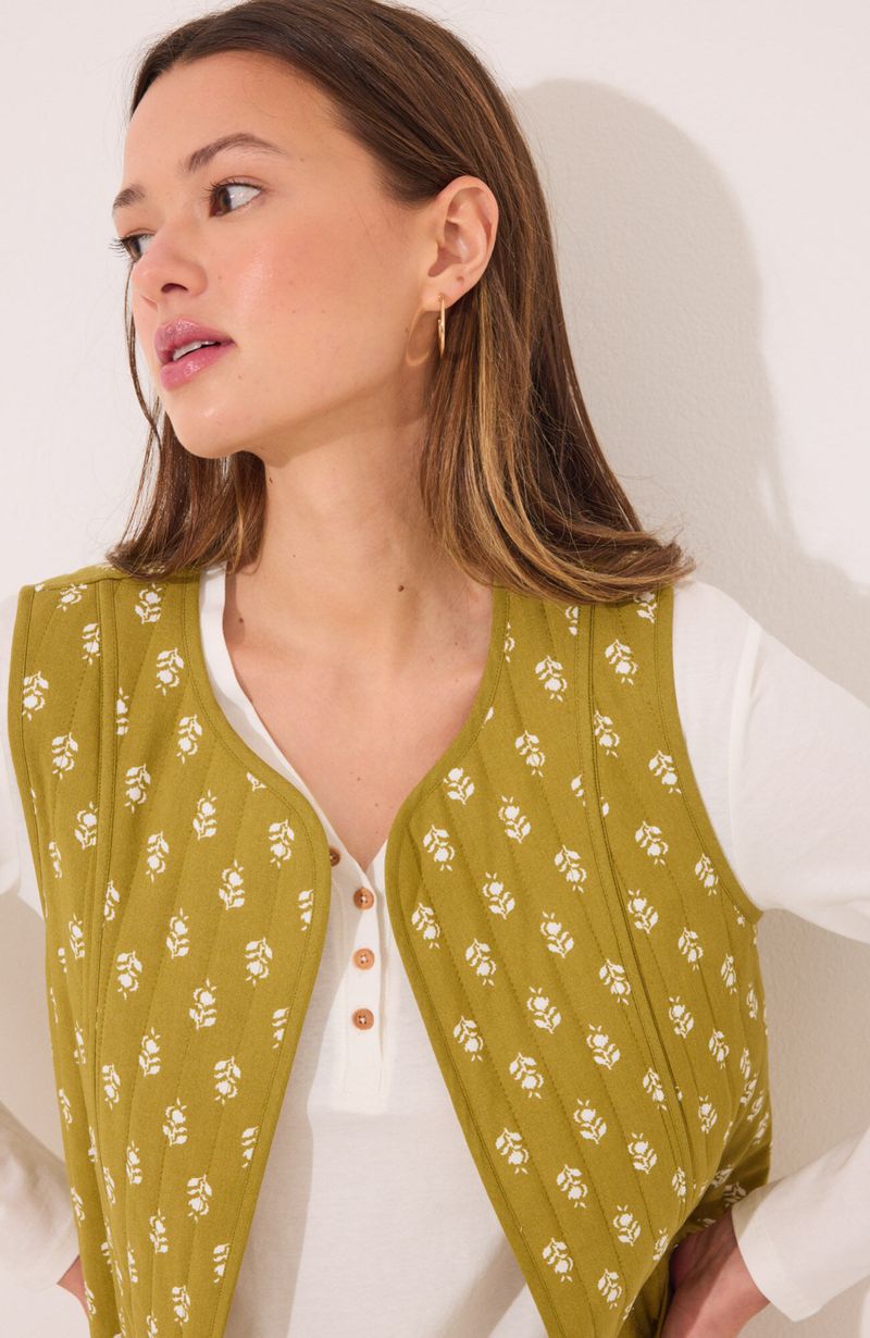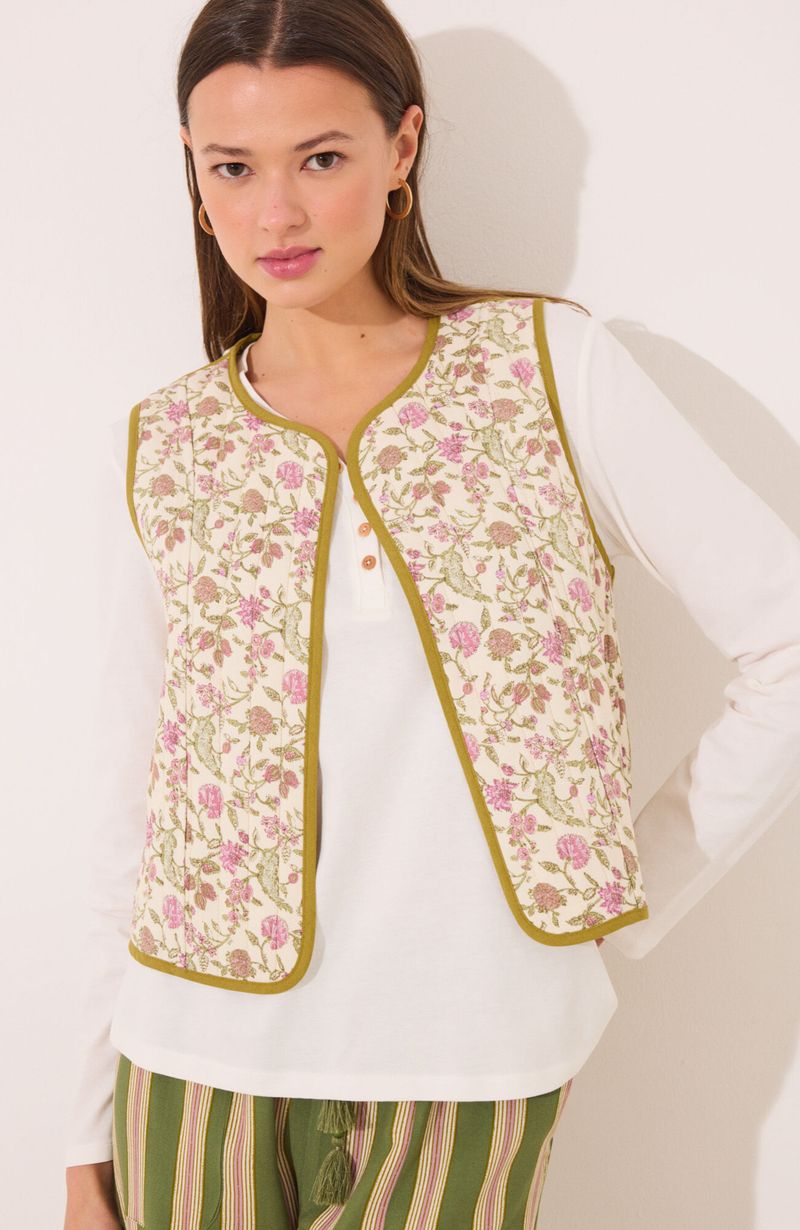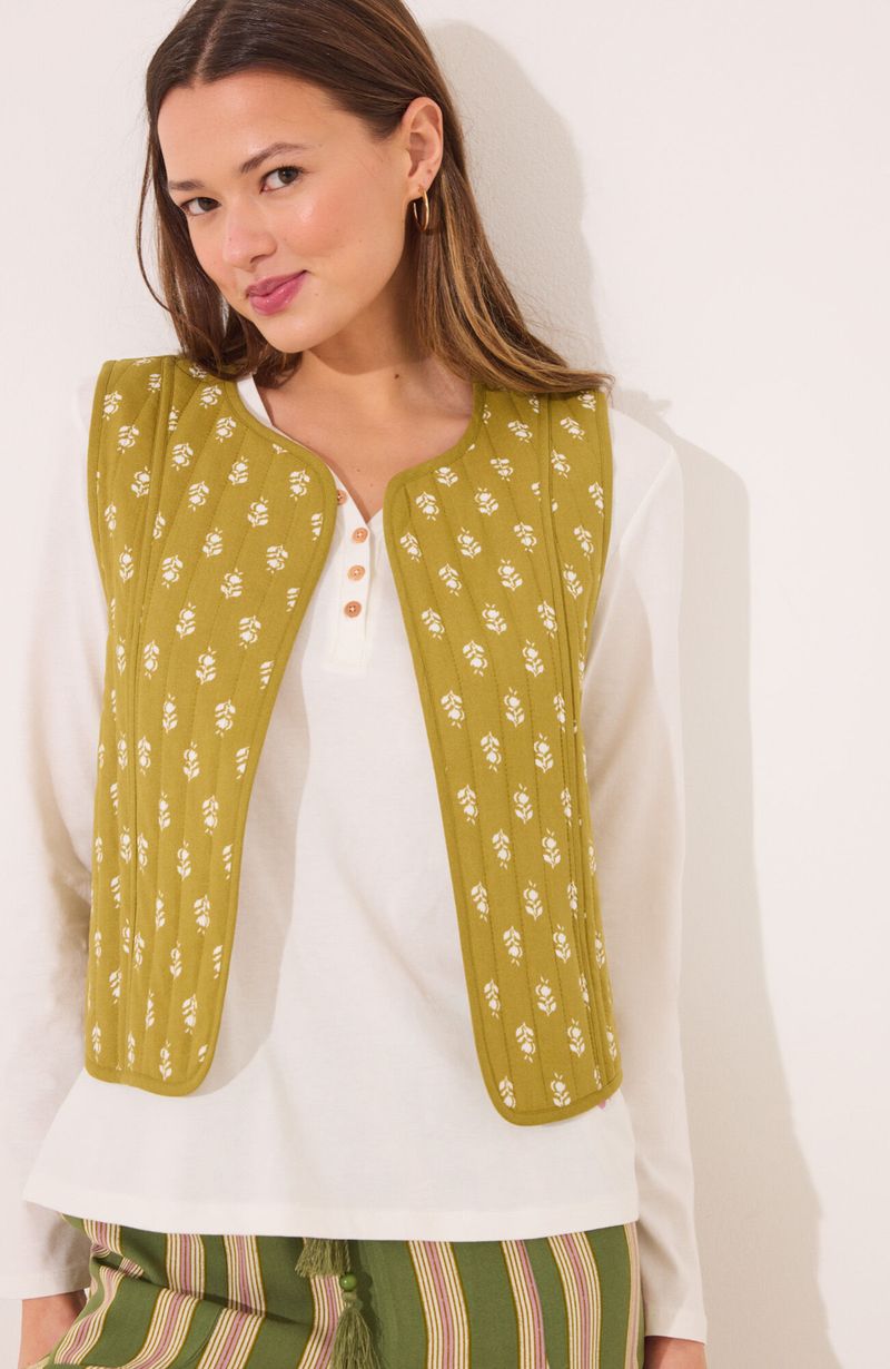 Pijamas y HomewearPolerasChaleco Reversible 100% Algodón Sellos Verdes Blanco Women'Secret