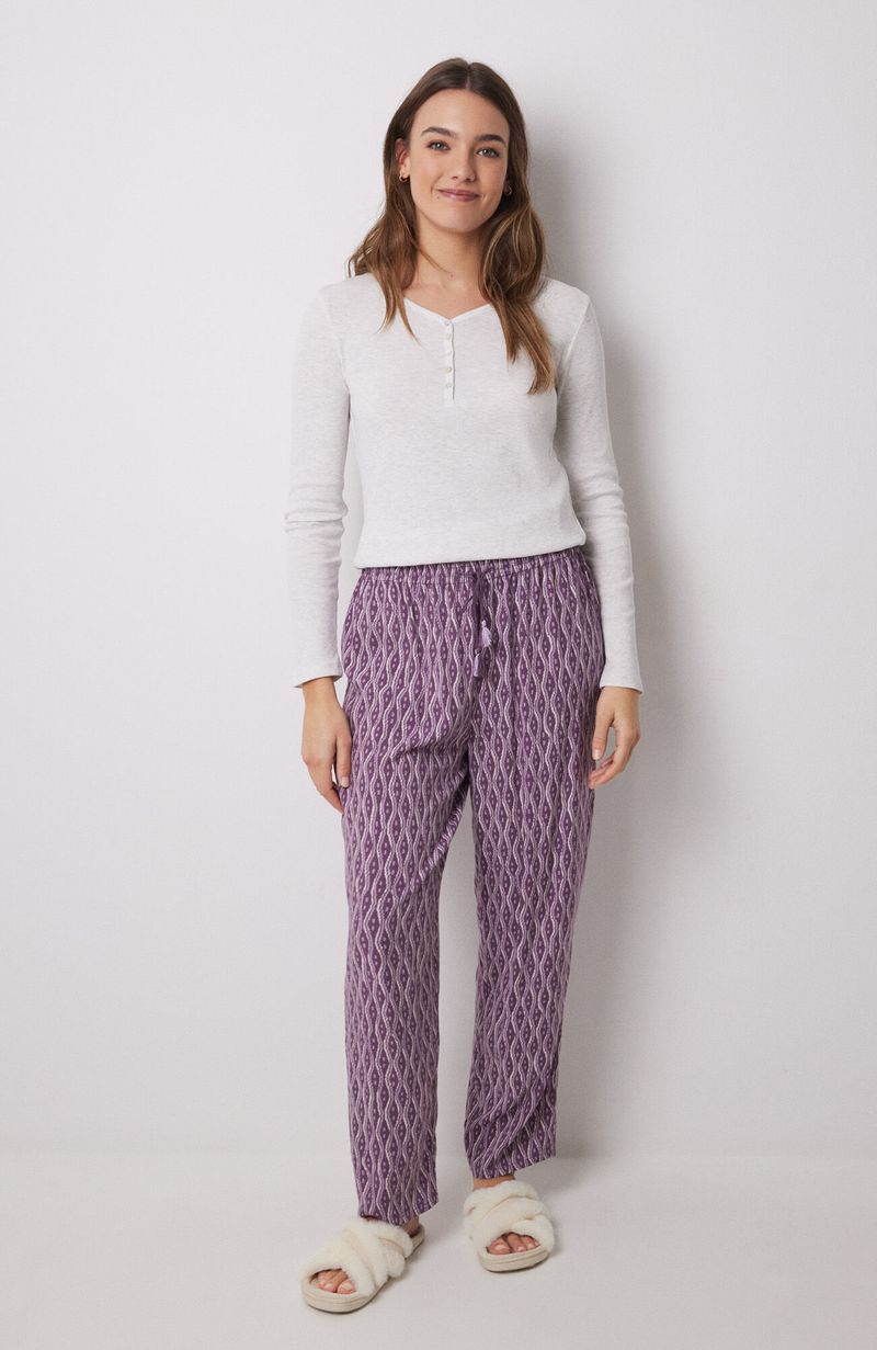 Pijamas y HomewearPantalonesPantalón Carrot Viscosa Estampado Ikat Morado Women'Secret
