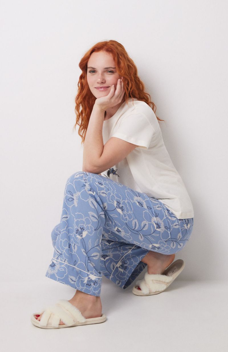 Pijamas y HomewearPantalonesPantalón Largo Estampado Flores Azules Azul Claro Women'Secret