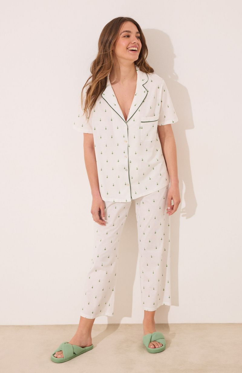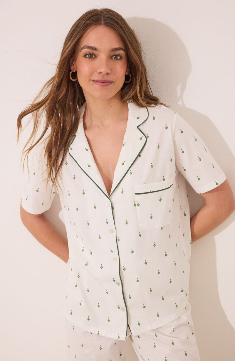 Pijamas y HomewearPijamas CortosPijama Camisero Algodón Estampado Print Blanco Women'Secret