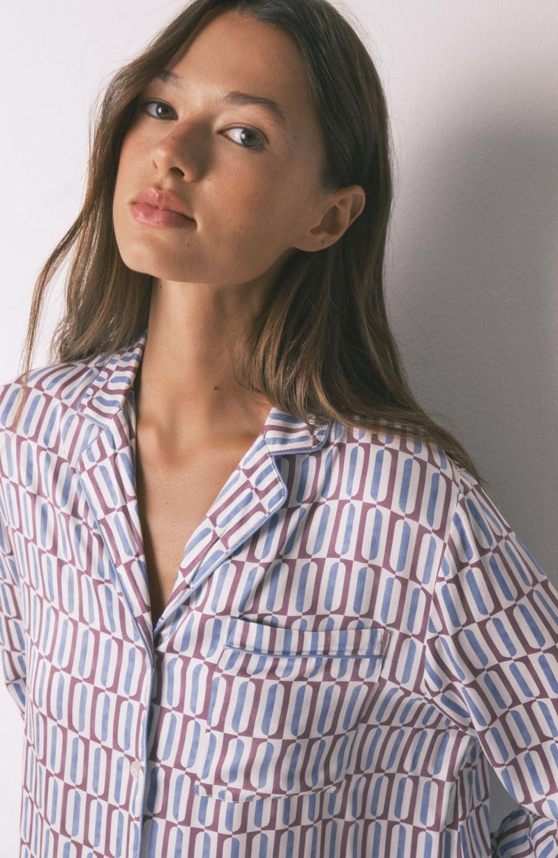 Pijamas y HomewearPijamas LargosPijama camisero largo satén print geométrico