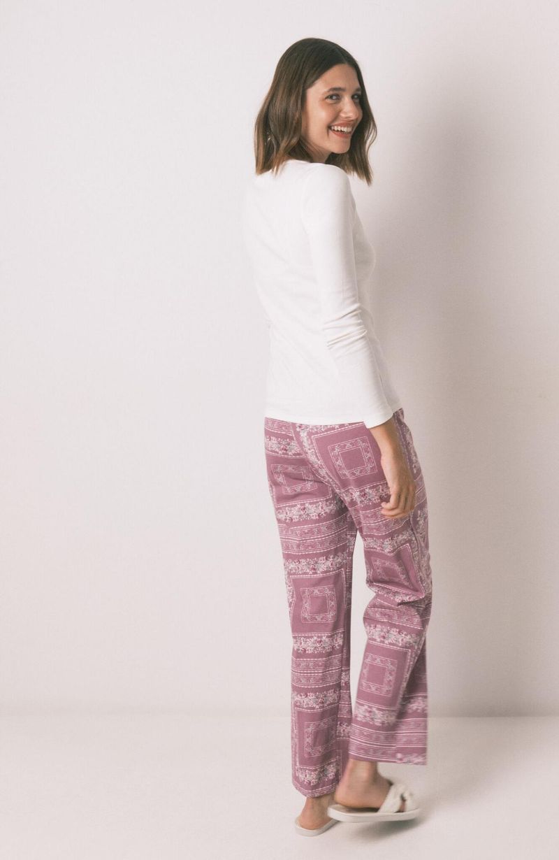 Pijamas y HomewearPijamas LargosPijama Largo Algodón Estampado Flores Marfil Women'Secret