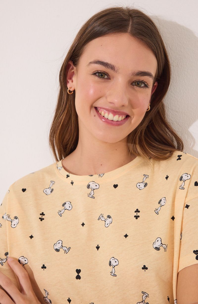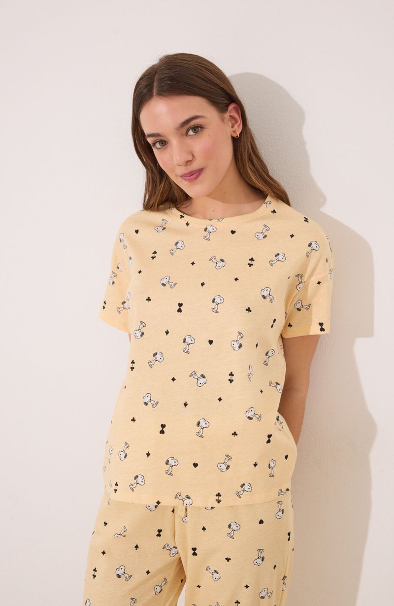 Pijamas y HomewearPijamas LargosPijama Largo Manga Corta Algodón Snoopy Amarillo Amarillo Women'Secret