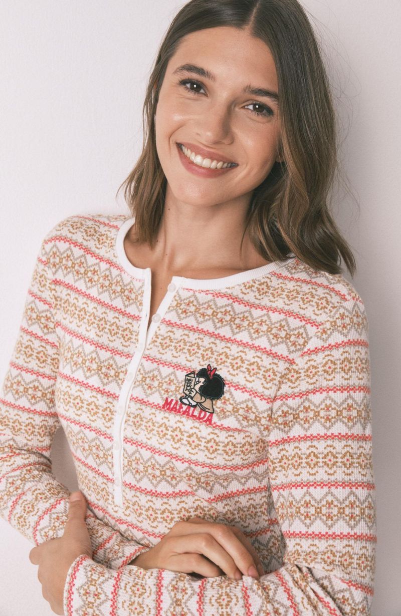 Pijamas y HomewearPijamas LargosPijama largo textura gofre afelpado cenefas Mafalda