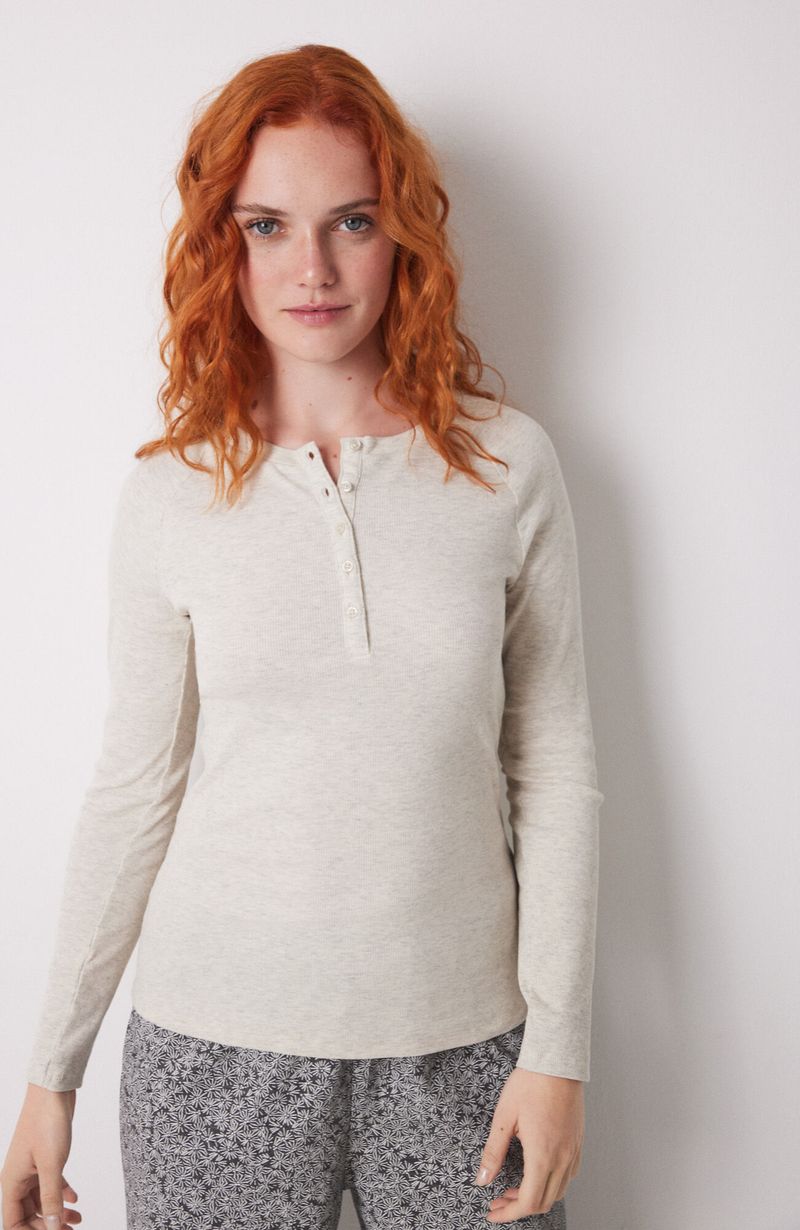 Pijamas y HomewearPolerasPolera Manga Larga Canalé Arena Beige Women'Secret