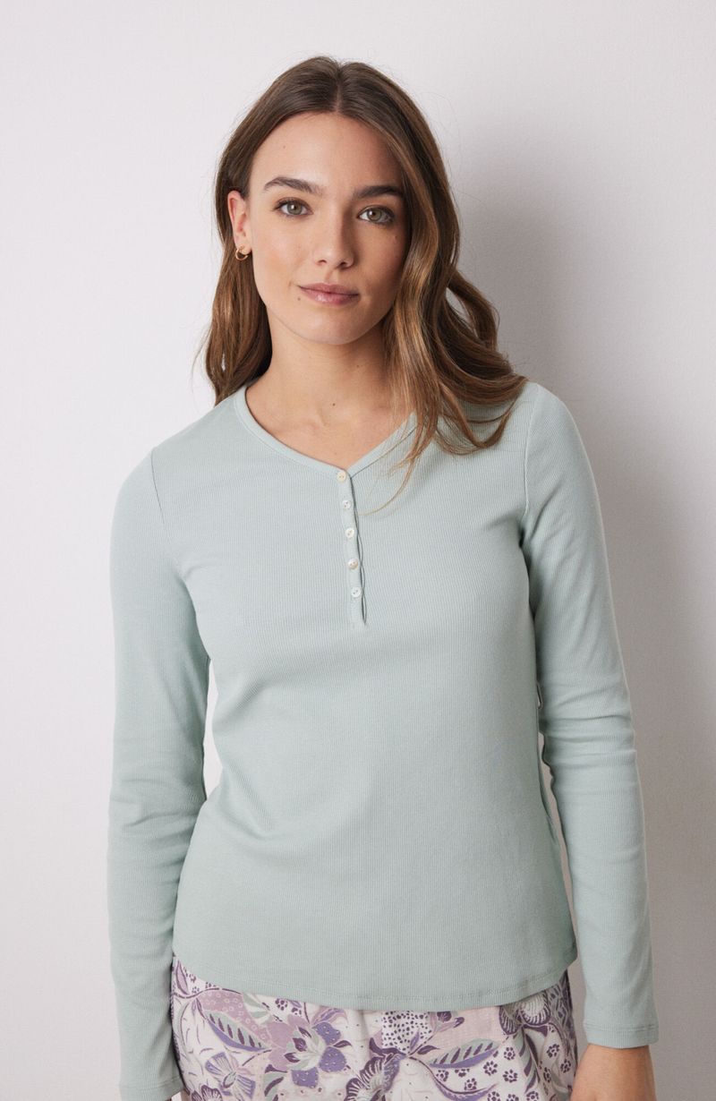 Pijamas y HomewearPolerasPolera Manga Larga Canalé Verde Gris Claro Women'Secret