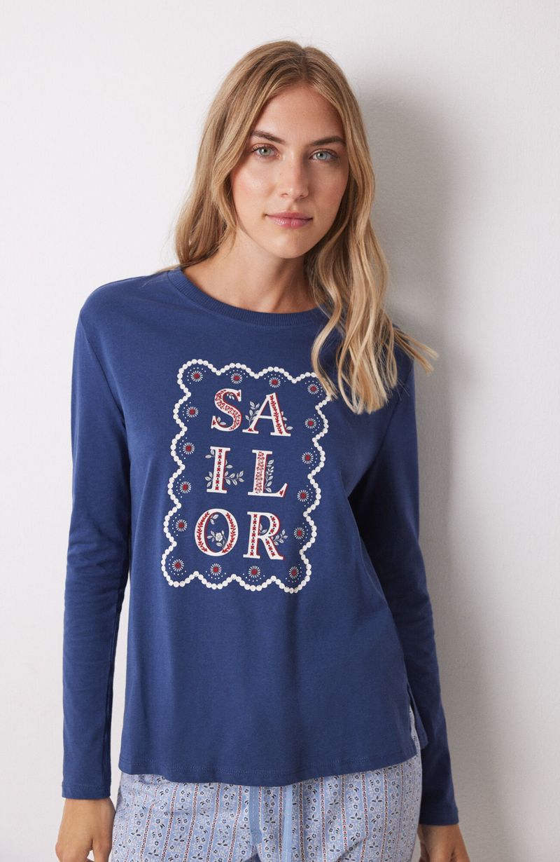 Pijamas y HomewearPolerasPolera Manga Larga Azul Sailor Azul Women'Secret